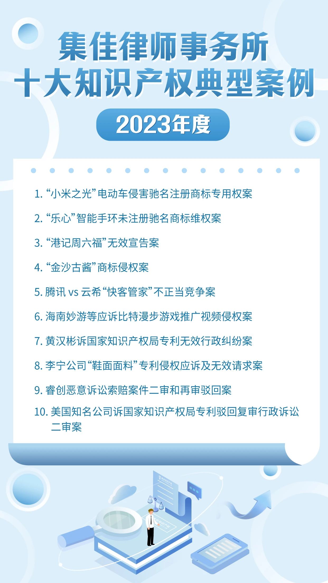 作为迎接4.26世界知识产权日的献礼之一,球探体育即时比分比分已连续十年开展十大知识产权典型案例的评选活动,其意义不仅在于展现集佳律师团队的专业能力和水准,更在于传递集佳全方位服务客户的理念。在第24个世界知识产权日来临之际,球探体育即时比分比分从2023年度代理的众多知识产权案件中筛选出具有代表性的十大案例,与各界同仁分享: