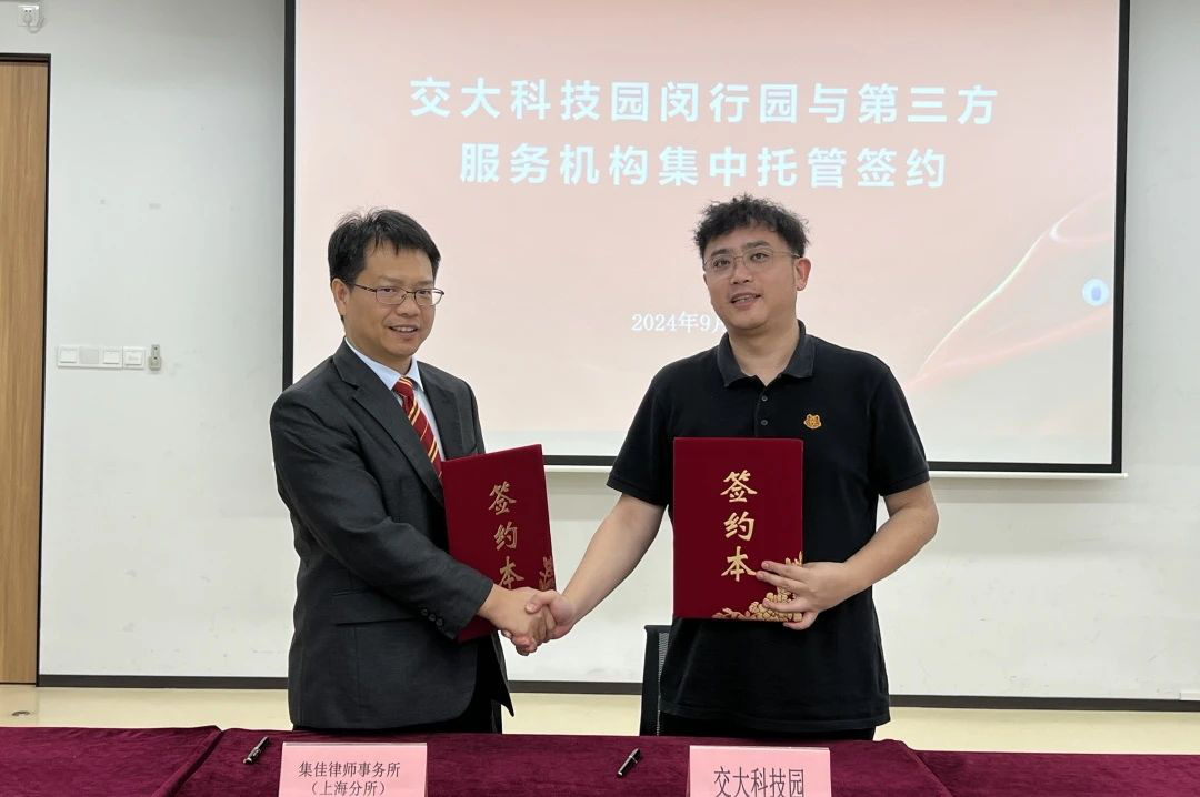 为助力企业科技创新和经济发展护航保障,提供高质量维权公益援助,会上举行了“上海市开发区协会维权援助工作站交大科技园闵行园工作室”揭牌仪式,交大科技园闵行园与球探体育即时比分比分上海分所进行了托管签约。