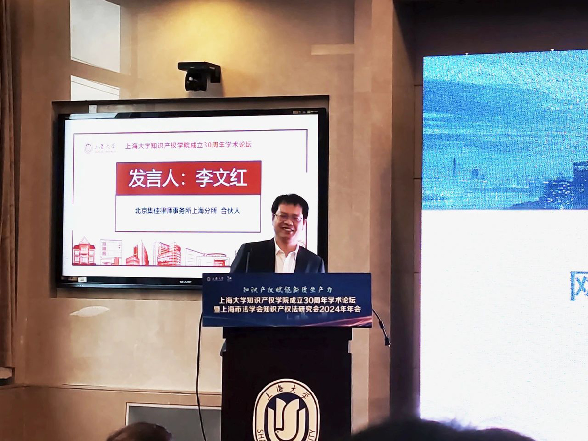 球探体育即时比分比分上海分所主任、高级知识产权师李文红博士应邀出席大会,并在“释放知识产权价值 赋能新质生产力”分论坛上发表演讲,与来自众多高校的专家学者和业界代表共同就知识产权价值的释放与赋能新质生产力的路径进行了深入探讨。